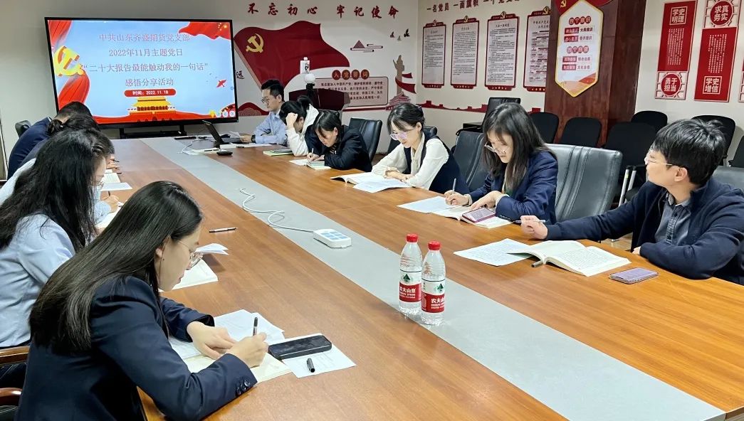 聽完各位黨員同志的感悟分享,齊盛期貨公司黨支部書記高軍對全體黨員提出了要求。高軍指出,要全面準確學習領(lǐng)會黨的二十大精神,堅持知行合一,貫徹落實好黨的二十大作出的重大決策部署,增強“四個意識”、堅定“四個自信”、做到“兩個維護”。要在集團黨委統(tǒng)一領(lǐng)導下,密切配合,把學習宣傳貫徹黨的二十大精神與加強領(lǐng)導班子建設和基層黨組織建設結(jié)合起來。